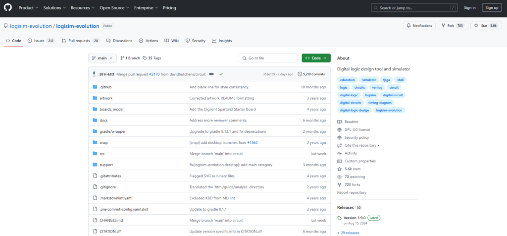 Logisim-Evolution 是 Logisim 的改進版,是一款開源的數位電路設計與模擬工具。它適用於教學和實驗,幫助使用者設計、測試和模擬數位邏輯電路。