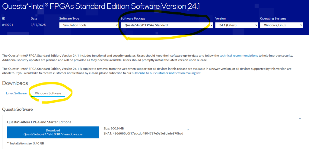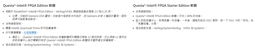 安裝好後,還不能正常跑VHDL的模擬,需要去Intel官網下載Questa模擬器。要選擇Questa*-Altera FPGA and Starter Editions windows版本,可以註冊會員取得免費授權,一年需要更新一次授權。
